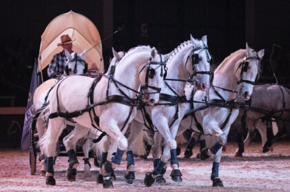 Am Freitag und Samstag Abend finden traditionell die Gala-Abende "Im Takt der Pferde" in der Zeppelin CAT Halle A1 statt. Mit spannenden Showeinlagen und faszinierender Reitkunst begeistern die Gala-Abende knapp 7.000 Besuchende.