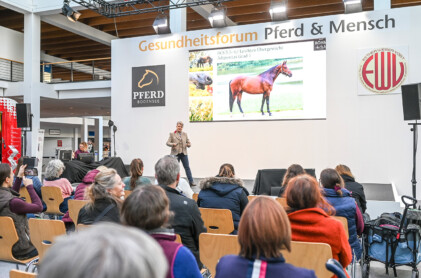Die Fachmesse mit dem großen Gesundheitsforum „Pferd & Mensch“ im Foyer West bietet praktische Ratschläge für Pferdehalter, Züchter und Liebhaber. Die inhaltliche Ausrichtung wurde von Esther Weber-Voigt unter Verwendung der Schlagworte „Ausbildung, Training und Gesundheit“ festgelegt.
